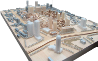 解決方案 建筑模型是建筑方案可視化途徑。傳統(tǒng)制作方式耗時(shí)耗力,還原縮小后的細(xì)微結(jié)構(gòu)困難,制作成本昂貴,會(huì)放棄重要的小細(xì)節(jié)而造 成負(fù)面影響。3D打印以微縮實(shí)體的方式有效地傳達(dá)設(shè)計(jì)理念,并具備操作簡(jiǎn)單,可直觀的反映出建筑物的結(jié)構(gòu)、尺寸等相關(guān)特點(diǎn) 降本提效 直接打印出的沙盤(pán)模型,與傳統(tǒng)方式相比大大縮短制作時(shí)間 成本以及金錢(qián)成本 精細(xì)度高 精細(xì)度高,光敏樹(shù)脂材料成型,成品堅(jiān)固耐用,可以打印出0.03mm 左右的細(xì)微結(jié)構(gòu)和0.06mm壁厚的結(jié)構(gòu) 等比例微縮實(shí)體 進(jìn)行快速的建造和成型,創(chuàng)建詳細(xì)、準(zhǔn)確的比例模型,所有 細(xì)節(jié)完美呈現(xiàn),展示效果極佳 材料種類(lèi)豐富 料選擇的范圍廣,尼龍和樹(shù)脂是主要材料,可根據(jù)需求增加透明、金屬 (鋼、銅)等不同的元素,也可以后期上色達(dá)到想要的效果